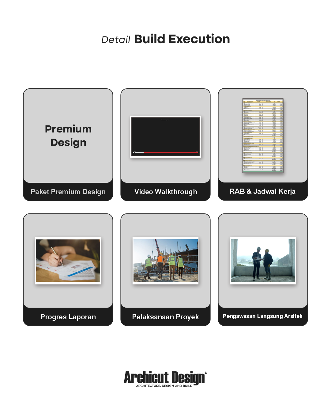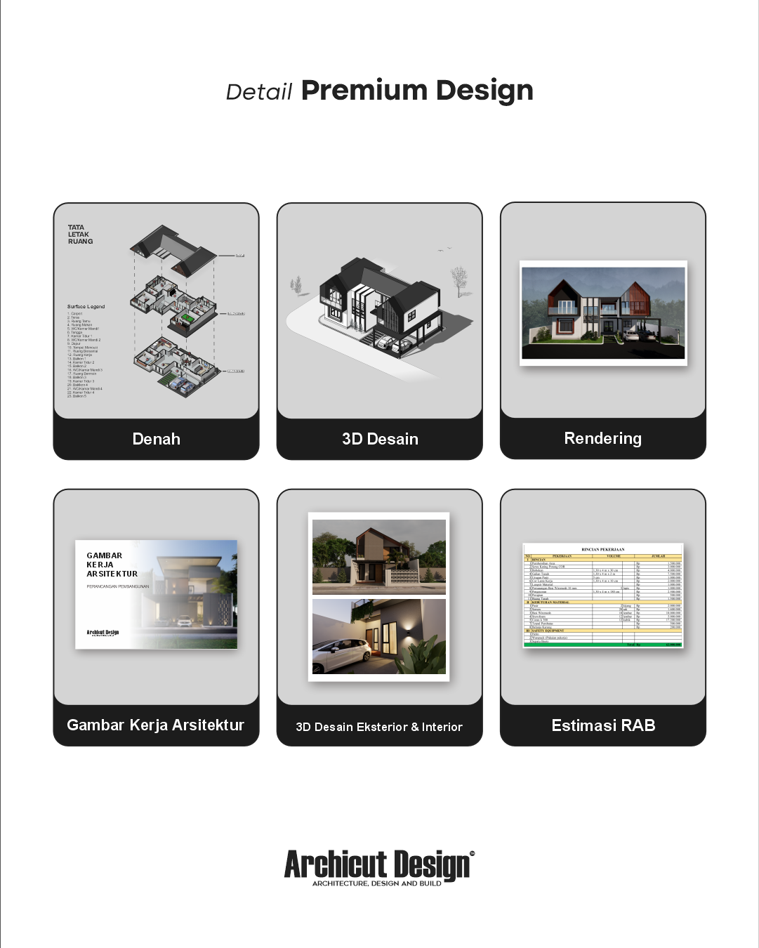 Penyajian gambar 3D visualisasi interior dan eksterior yang detail dan realistis, memudahkan gambaran akhir proyek sebelum tahap konstruksi dimulai.